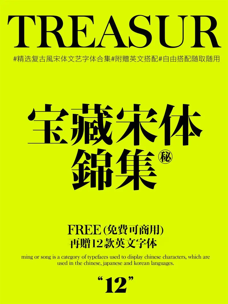 12组可商用宋体字体版式设计PS中英文组合搭配procreate字体包